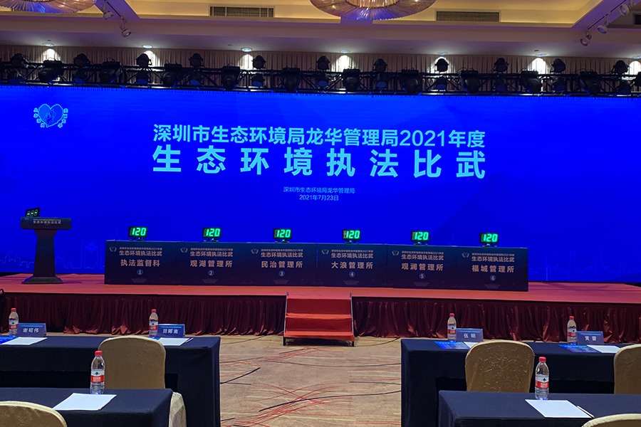 为深入贯彻习近平生态文明思想,打造生态环保铁军,深圳市市生态环境局龙华管理局举办2021年度生态环境执法比武竞赛活动,共6支执法队伍30名基层执法人员参加比赛。龙华管理局领导出席竞赛活动并对获奖队伍及个人进行颁奖典礼。