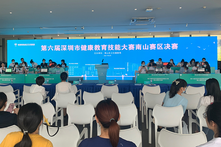 近日,由南山区卫生健康局主办,南山区各区属医疗单位协办的第六届深圳市健康教育技能大赛南山区决赛在深圳湾人才公园求贤阁成功举行,8支代表队36位代表选手参赛。这8支队伍来自南山区医疗集团总部、华中科技大学协和深圳医院、前海蛇口自贸区医院、南方科技大学医院、南山区妇幼保健院、南山区卫生监督所、南山区疾病预防控制中心、南山区慢性病防治院。大赛共分为健康知识竞赛和案例展示及科普演讲两个环节。比赛紧紧围绕健康教育技能的理论与运用开展,健康知识竞赛环节包括必答选择题及抢答题,题目涵盖健康教育文件解读、健康教育技能的场景化应用、健康教育技能实践等多项内容。题材上覆盖了新冠疫情、控烟、心理健康等社会热点话题。南山区卫生监督所在本环节结束后暂居榜首。