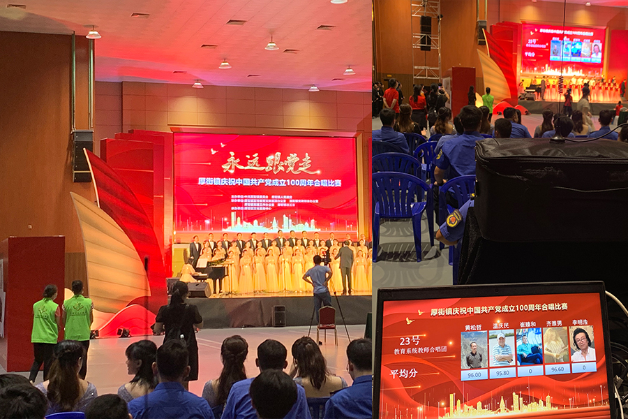 “永远跟党走”——东莞市厚街镇庆祝中国共产党成立100周年合唱比赛,在陈屋社区文体中心拉开序幕,各参赛队伍用嘹亮的歌声和真挚的情感,表达爱党爱国之情,展现了奋力推进厚街高质量发展的坚定决心和信心。