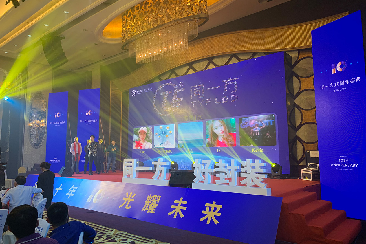 荣耀十载,一路相伴。2019年3月22日下午,深圳同一方光电技术有限公司紧扣“铸梦十年,光耀未来”主题,在深圳维纳斯皇家酒店隆重举行了2019深圳同一方开春十周年庆典。