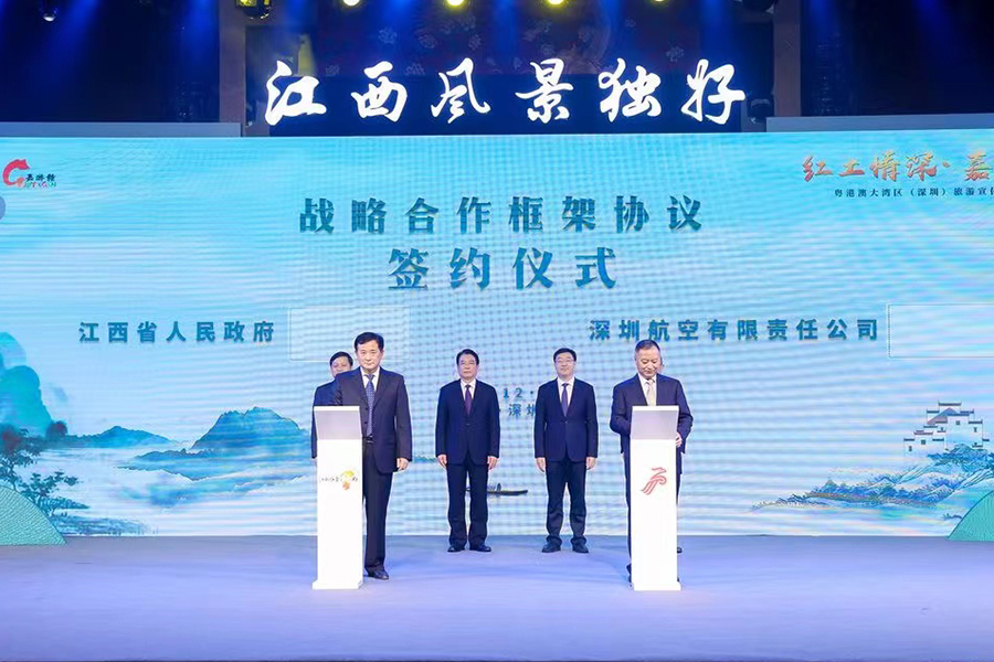 深圳航空有限责任公司与江西省签署了战略合作框架协议。双方将开展包括航空大交通建设、媒体宣传推广、“航空+旅游”合作、传统文化和生态文化合作、党建教育等全方位框架合作。